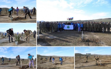 "Yaşıl Marafon" çərçivəsində hərbçilərin iştirakı ilə ağacəkmə aksiyası keçirilib