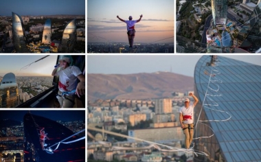 Dünya rekordçusu Alov Qüllələrini fəth etdi: Bakıdakı tarixi sleklayn hadisəsi