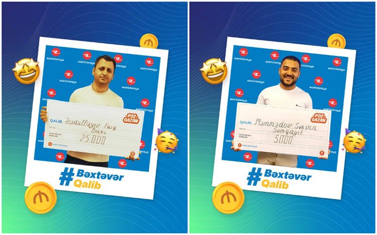 "Qızıl" lotereyasında da 2 böyük uduş - 25 000 manat qeydə alınıb. Uduşlar Bakıda Faiq Əsədullayev, Qəbələdə isə Fəqan Şeydayevin bəxtinə çıxıb.