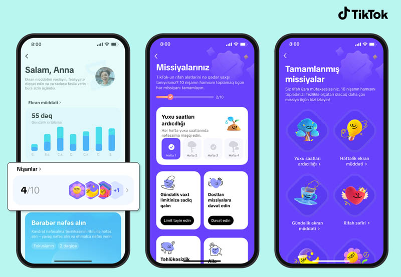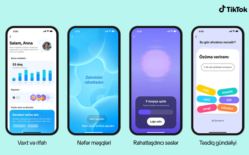 “Vaxt və rifah” bölməsinin işə salınması ilə eyni vaxtda TikTok dörd yeni rəqəmsal rifah missiyasını təqdim edir: