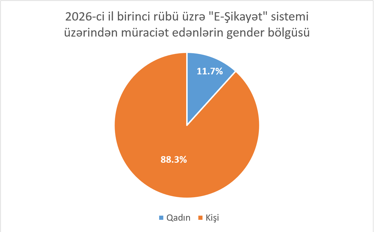 Sistem üzərindən 2026-cı ilin birinci rübü üzrə müraciət edənlərin 88,3%-ni kişilər, 11,7%-ni isə qadınlar təşkil edib.