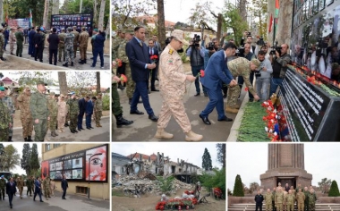 Военные атташе иностранных государств почтили память жертв террора в Гяндже