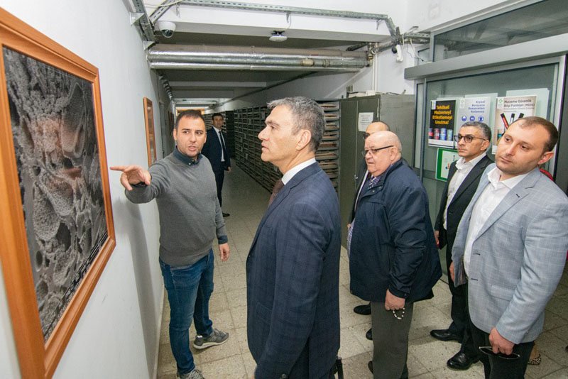 11 мая азербайджанская делегация посетила испытательную лабораторию аналитической химии и металлургии кафедры анализа и технологии минерального сырья, а также лабораторию, где изучаются отрасли металлургии, полезных ископаемых, нерудных и строительных материалов, а также ознакомились с работой этой лаборатории.